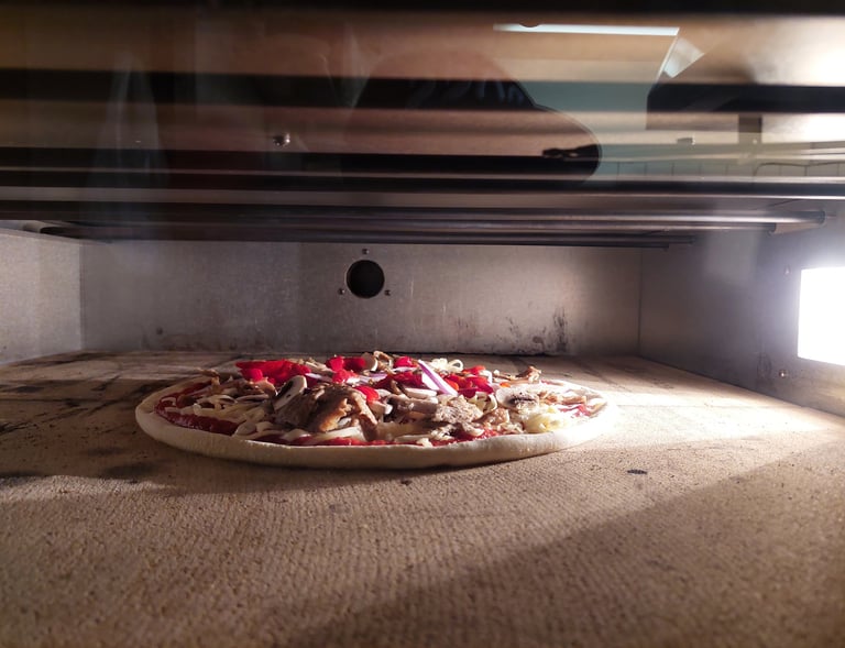 tomatsås, ost, kebab, kycklingkebab, champinjoner, lök, paprika, vitlök, grön chili
